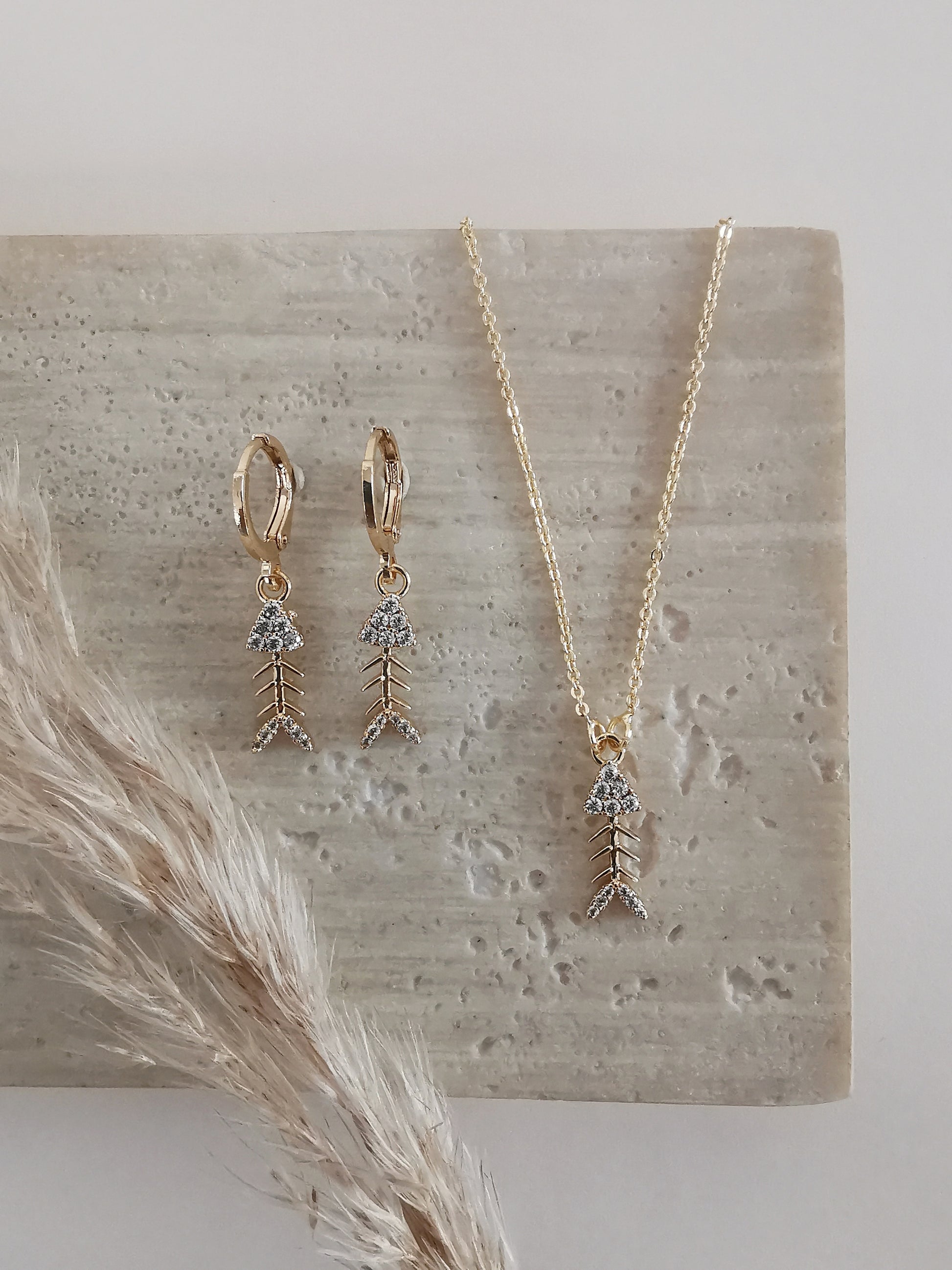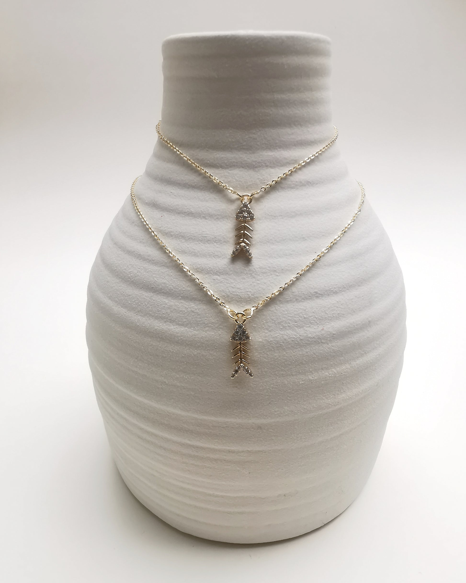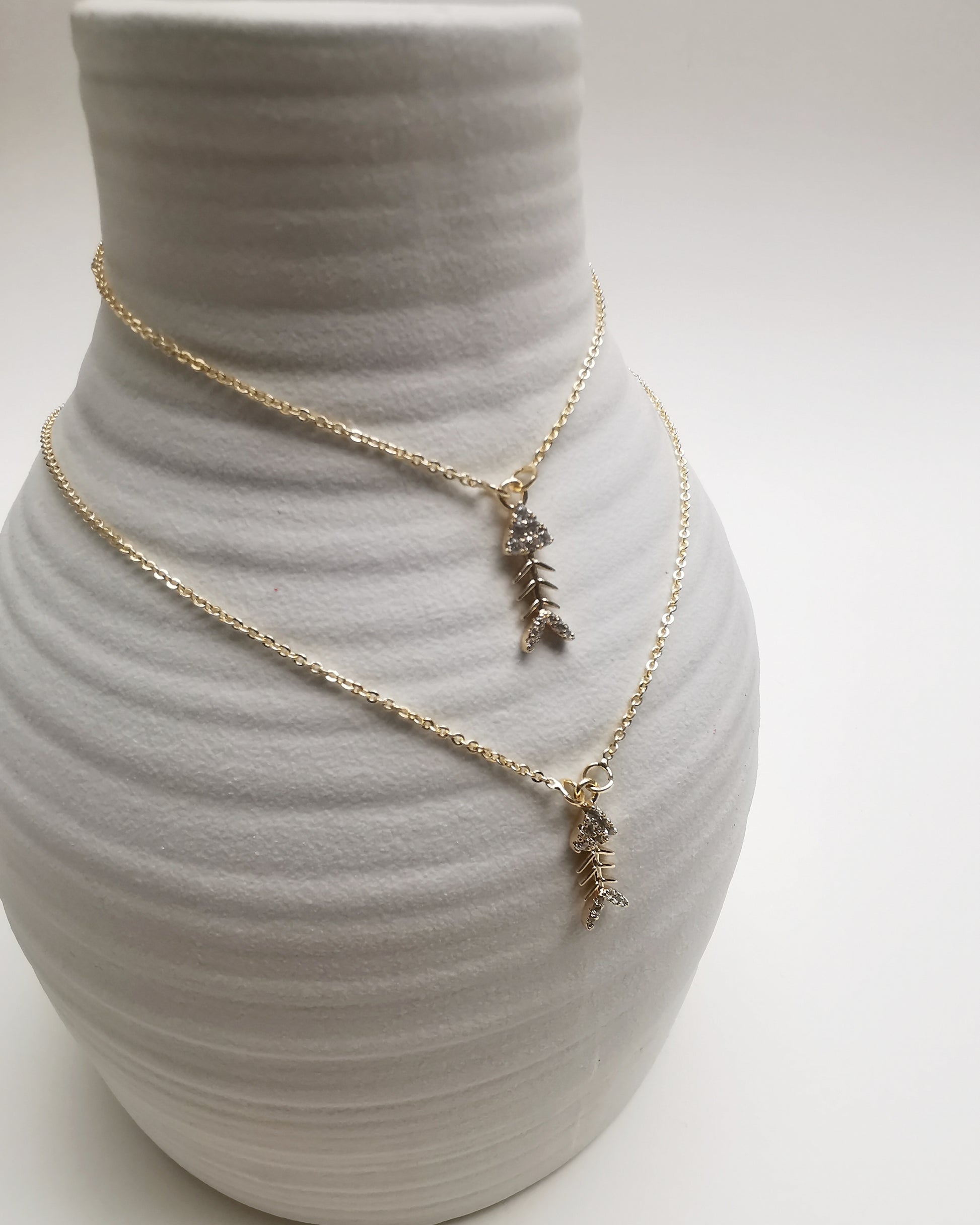 Add a touch of playful elegance with our fish bone pendant necklace, designed with delicate cubic zirconia details that shimmer beautifully in the light. These small and dainty pendant necklace is perfect for everyday wear or as a subtle statement piece. Crafted with attention to detail, the unique fish bone design adds a hint of personality while maintaining a refined look. Pair them with our matching fish bone charm earrings for a coordinated jewellery set.